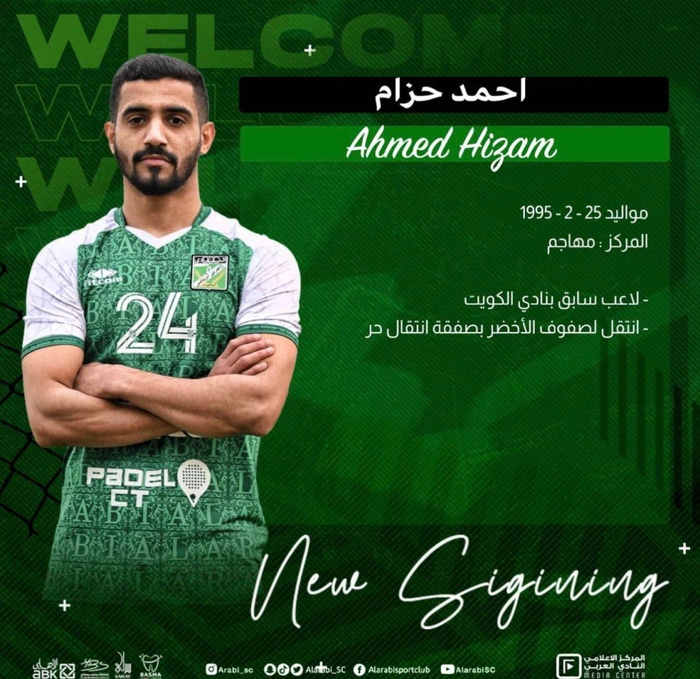 أعلن نادي العربي تعاقده مع لاعب الكويت السابق أحمد حزام، في صفقة انتقال حر، لتدعيم صفوف الفريق الأول لكرة القدم.