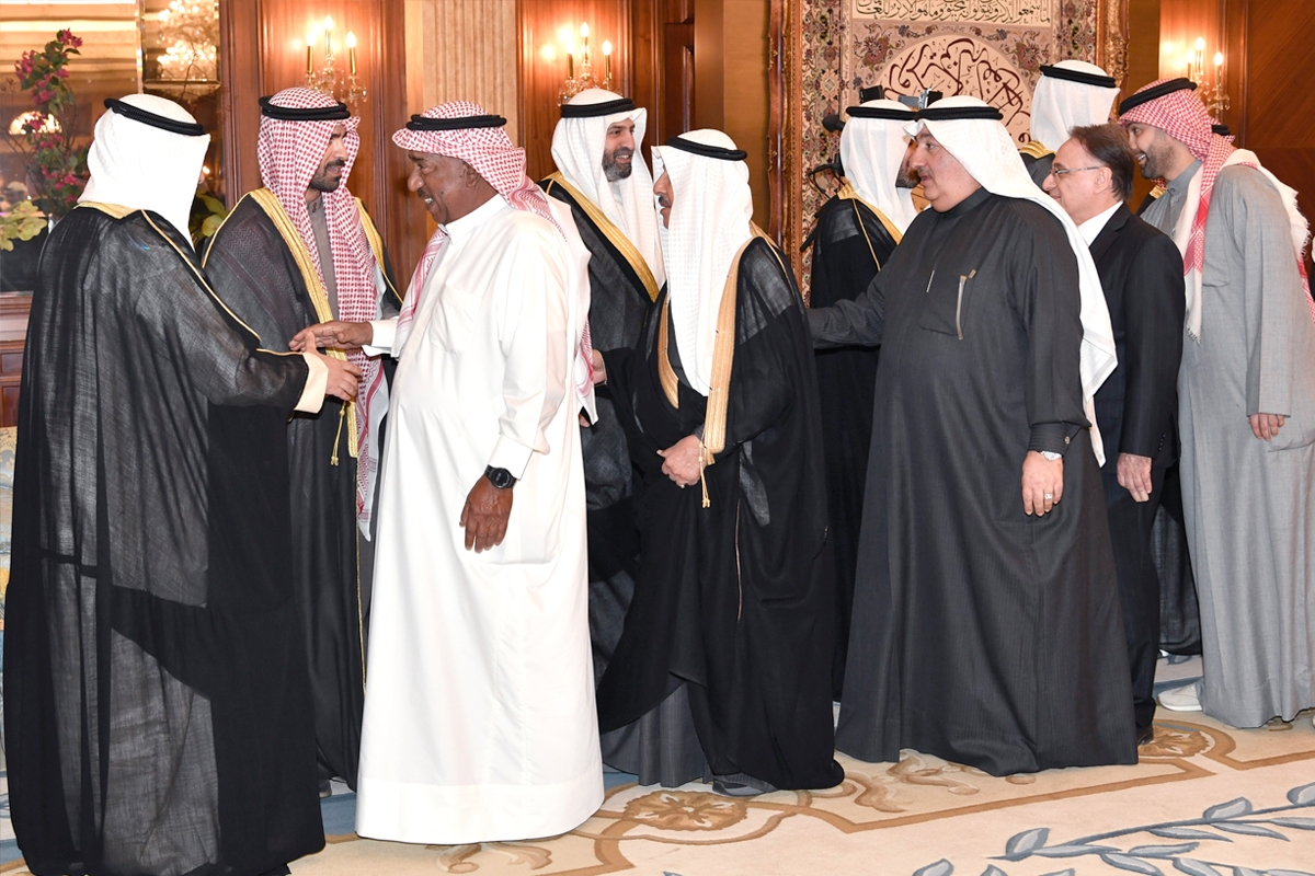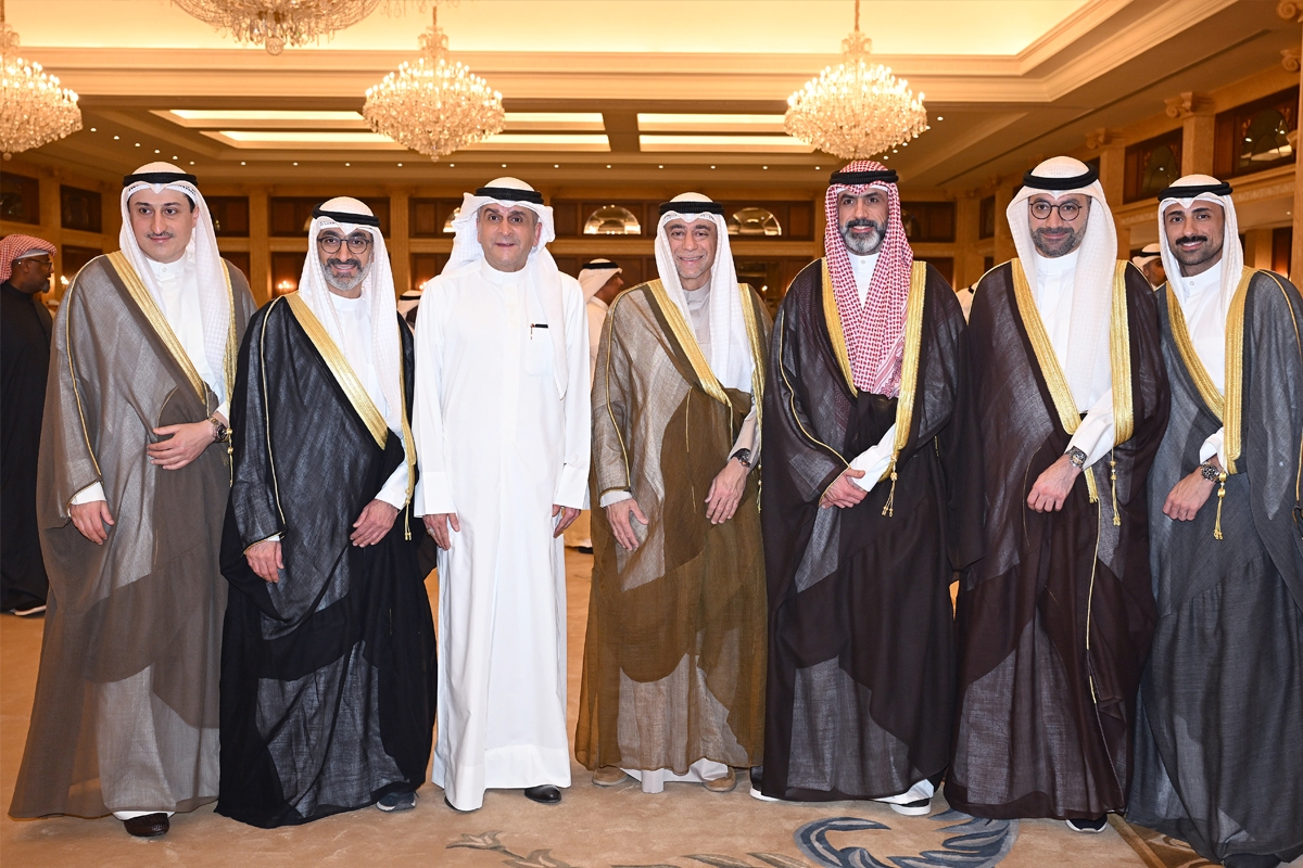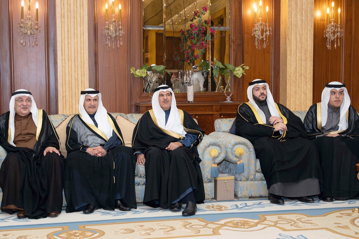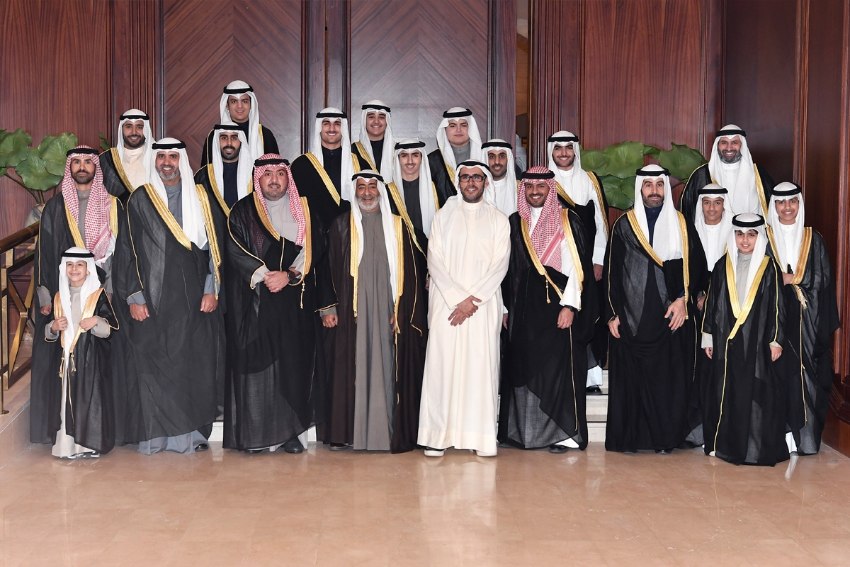 عبدالله سالم الصباح وثامر العلي يتوسطان بعض أبناء الأسرة خلال الاستقبال