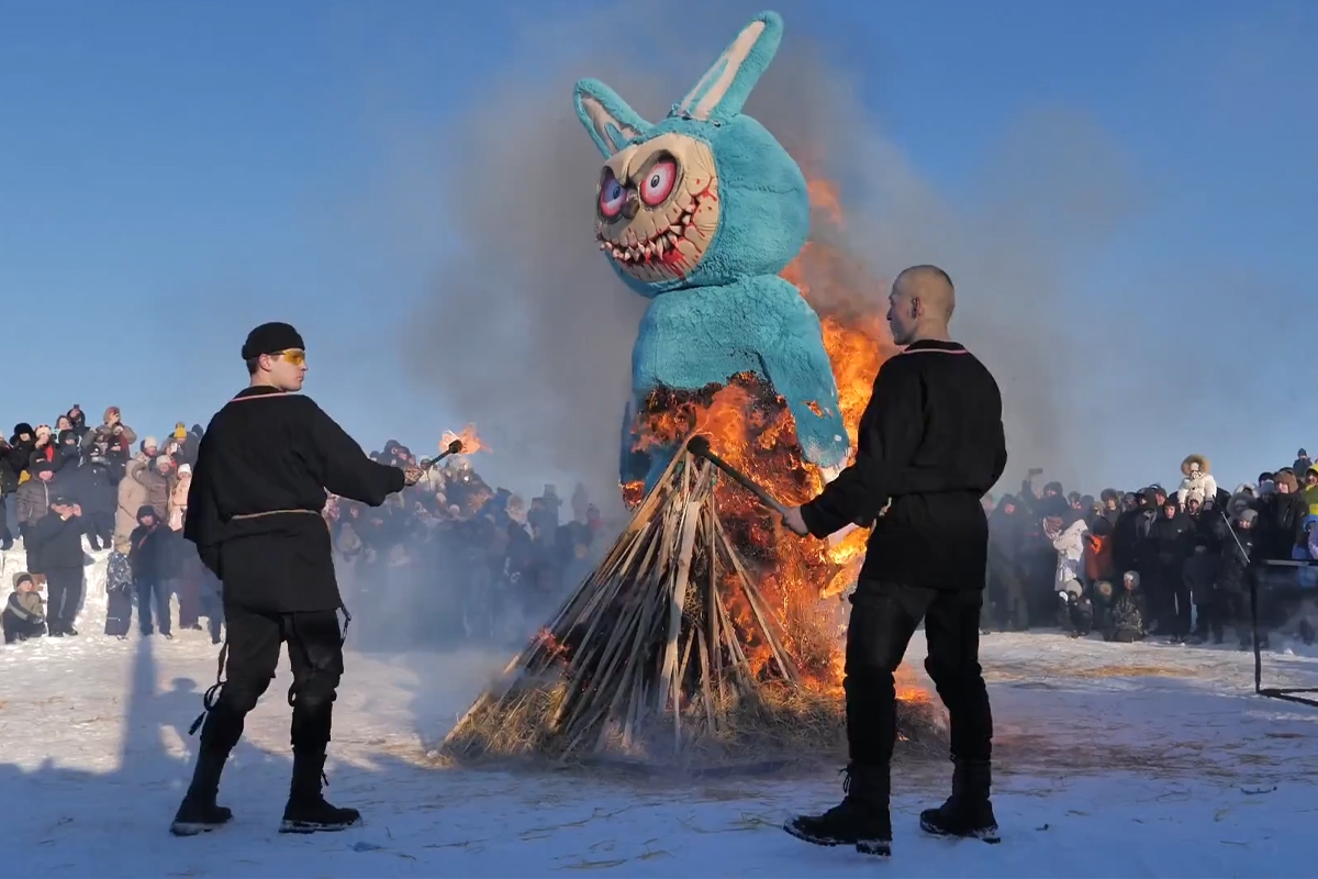 حرق مواطنون روس، ضمن منظمي مهرجان «ماسلينيتسا» في منطقة ليبيتسك الروسية، دمية «لابوبو» عملاقة في عملية تطهير رمزية انتصاراً على قوى الظلام.