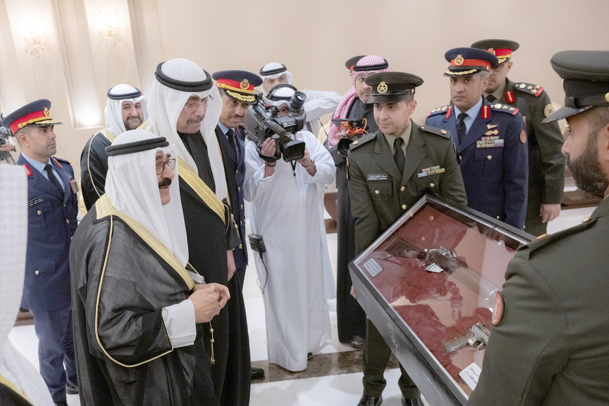 جاء ذلك خلال زيارة سموه وفي معيته سمو ولي العهد الشيخ صباح الخالد وسمو رئيس مجلس الوزراء الشيخ أحمد العبدالله وزارة الدفاع «جي وان»، حيث كان في استقبال سموه وزير الدفاع الشيخ عبدالله العلي، ورئيس الأركان العامة للجيش الفريق الركن خالد الشريعان، ووكيل الوزارة الشيخ د. عبدالله المشعل، ونائب رئيس الأركان العامة للجيش اللواء الركن طيار الشيخ صباح الجابر.