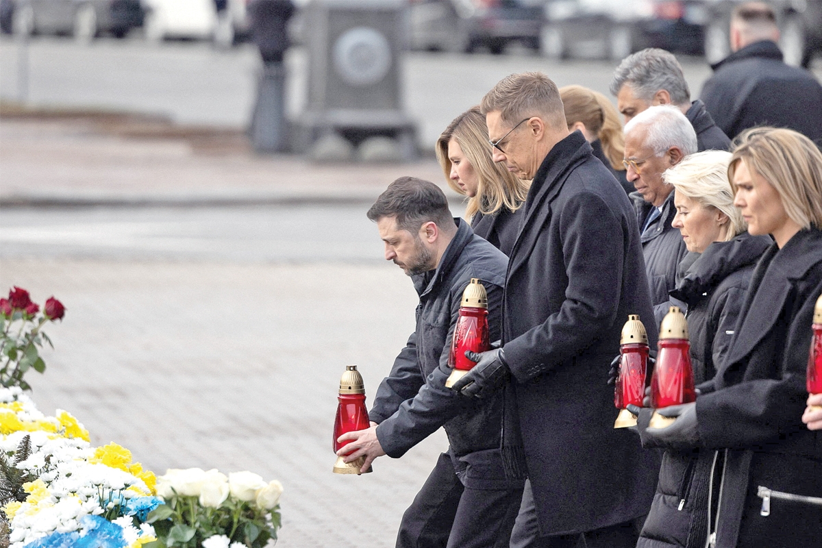 واستقبل الرئيس الأوكراني فولوديمير زيلينسكي من حضر من القادة الأوروبيين لإحياء المناسبة بينهم الرئيس الفرنسي إيمانويل ماكرون، والرئيس الفنلندي ألكسندر ستاب، ورئيس الوزراء السويدي أولف كريسترسون، إضافة إلى رئيسة المفوضية الأوروبية أورسولا فوندرلاين.