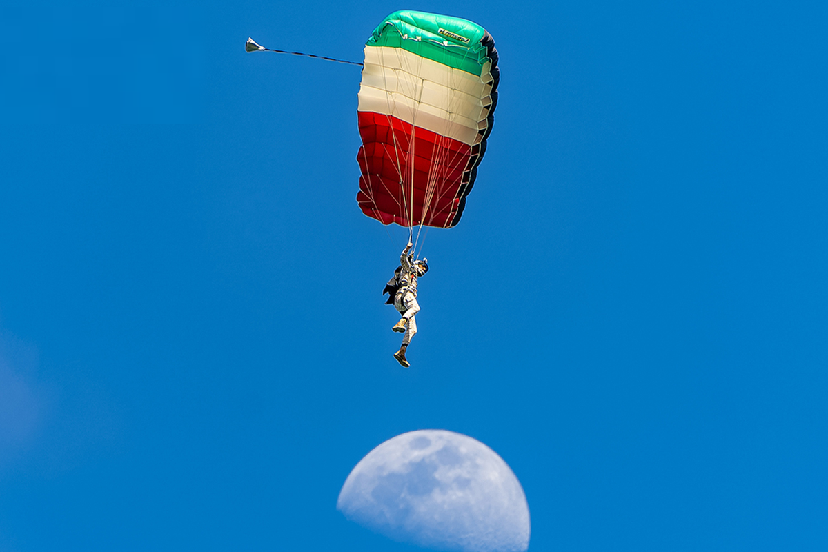 وتأملت الجماهير الحاضرة جهود الفريق لا سيما حين تفتحت مظلاتهم بألوان علم دولة الكويت لتشكل لوحة وطنية جسدت مستوى الاحتراف والتدريب المتقدم الذي يتمتعون به.