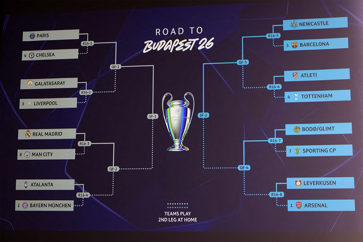 أجريت اليوم الجمعة قرعة الدور ثمن النهائي من مسابقة دوري أبطال أوروبا لكرة القدم لهذا الموسم.