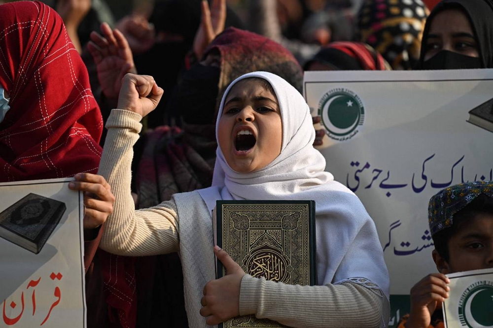 تظاهر آلاف الأشخاص في باكستان عقب صلاة الجمعة للتعبير عن غضبهم إزاء احتجاجات يمينية أتلفت خلالها حرقاً وتمزيقاً نسختان من المصحف في السويد وهولندا.