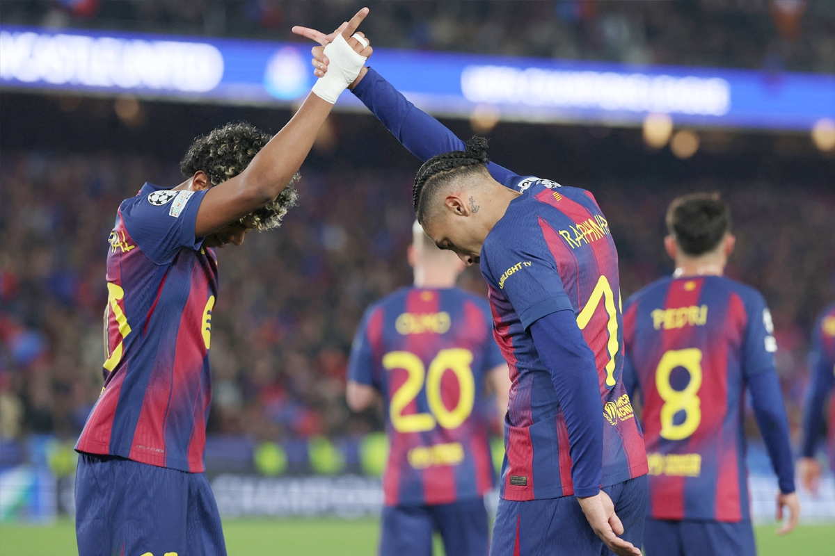 أحرز البرازيلي رافينيا (6 و72) ومارك برنال (18) ولامين جمال (45+7 من ركلة جزاء) وفيرمين لوبيس (51) والبولندي روبرت ليفاندوفسكي (56 و61) أهداف الفريق الكاتالوني، فيما وقّع السويدي أنتوني إيلانغا على هدفيّ الضيف الإنكليزي (15 و28).