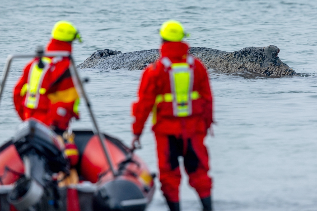 وقد شوهد الحوت لأول مرة في وقت مبكر من صباح أمس قرب نيندورف، التي تعد جزءا من بلدية تيميندورفر شتراند في خليج لوبيك. وكانت فرق الإنقاذ تحاول منذ منتصف النهار تحريره من ضفة رملية باستخدام قوارب الشرطة وقوارب مطاطية وطائرات مسيرة، إضافة إلى دعم من متطوعين وخبراء.