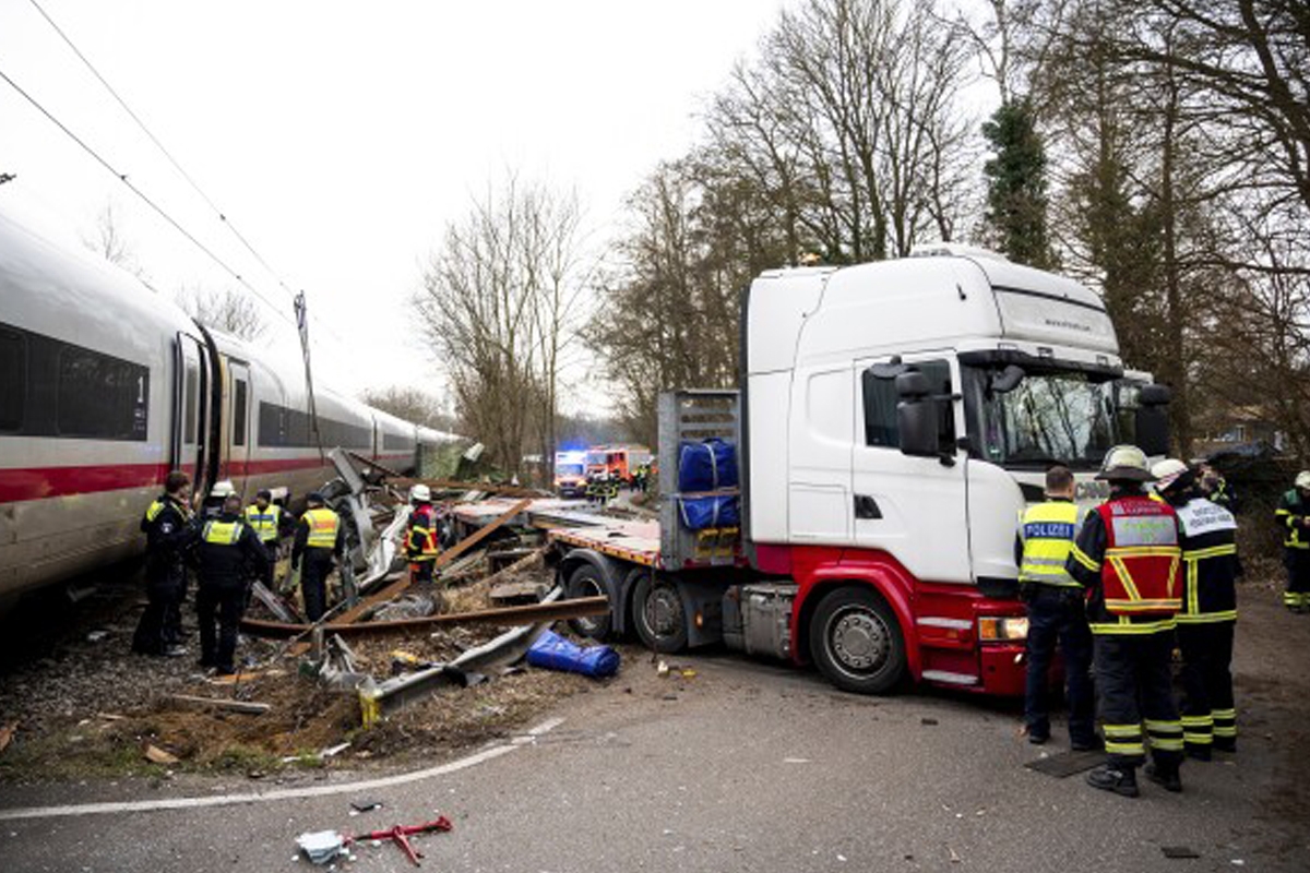 وقالت السُّلطات، في بيان نقلته "د ب أ"، اليوم، إن الناقلة علقت عند معبر سكك حديدية في إنسهايم، على بُعد نحو 100 كيلومتر شمال شرق شتوتغارت، وسط حركة مرور بطيئة، مع اقتراب قطار إقليمي سريع، موضحة أن سائق القطار استخدم مكابح الطوارئ، لكنه لم يتمكن من التوقف في الوقت المناسب.