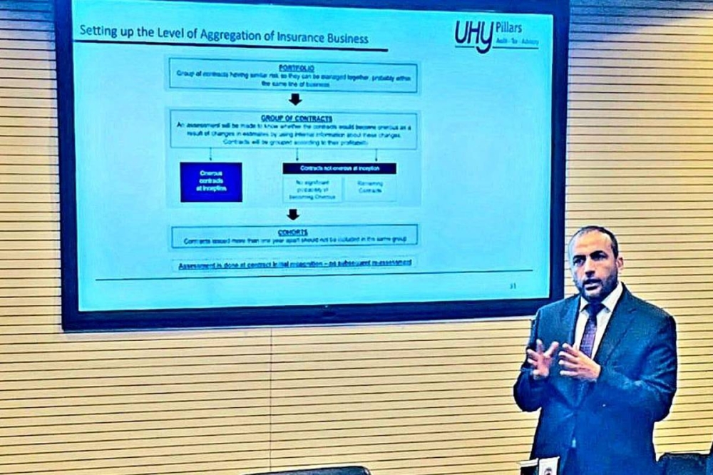 وذكر أنه من خلال التعاون المشترك مع مكتب «يو إتش واي لبنان» تم تشكيل فريق عمل مؤلف من 15 مهنياً متخصصاً في تطبيق متطلبات هذا المعيار على مستوى التقارير المالية وخمسة مهنيين متخصصين في تطبيق هذا المعيار على مستوى علم الإكتواري.