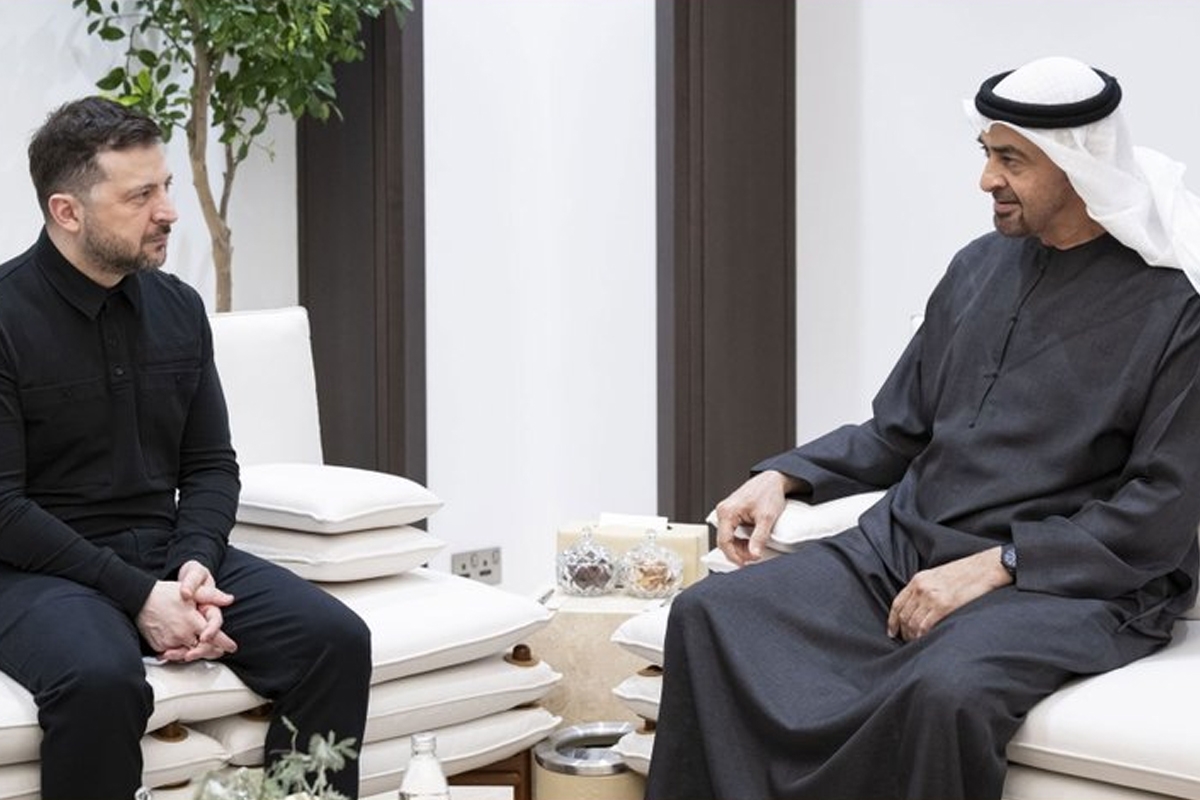 وجاء ذلك خلال لقاء الشيخ محمد بن زايد آل نهيان بالرئيس الأوكراني الذي يقوم بزيارة عمل إلى الدولة؛ حيث رحب به الشيخ محمد بن زايد في دولة الإمارات، معربا عن تقديره لزيارته في ظل الظروف الراهنة والتي تجسد متانة العلاقات التي تجمع البلدين.