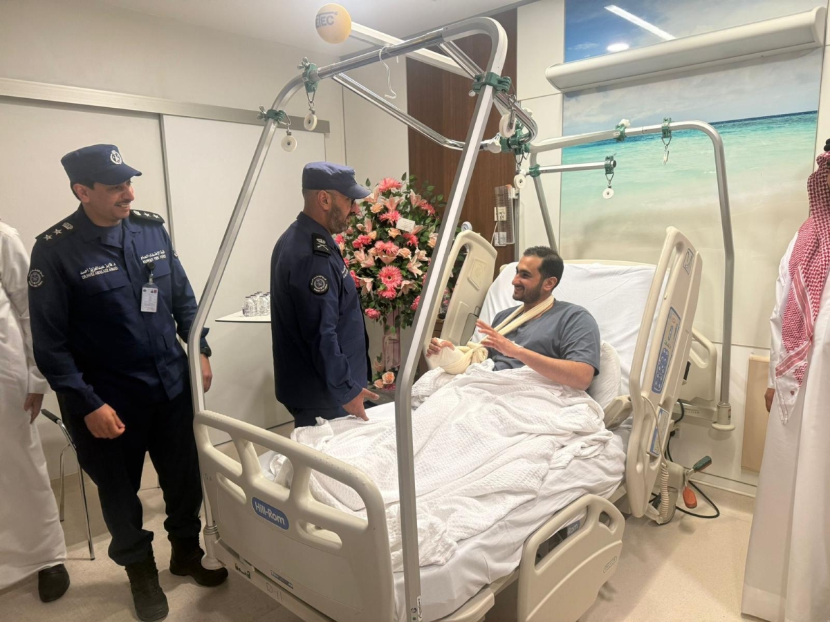 رئيس قوة الإطفاء العام زار أحد منتسبي القوة بعد تعرضه للإصابة أثناء أداء الواجب