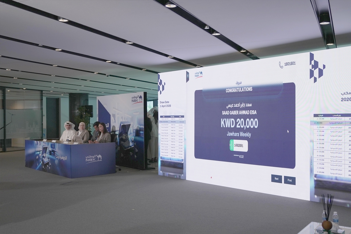 استأنف بنك الكويت الوطني برنامج سحوبات الجوهرة والجوهرة جونيور – أكبر برنامج سحوبات على مستوى الكويت - مؤكداً أن فرص العملاء خلال فترة تأجيل السحوبات ستظل محفوظة بالكامل، دون أي تأثير على فرصهم في الفوز.