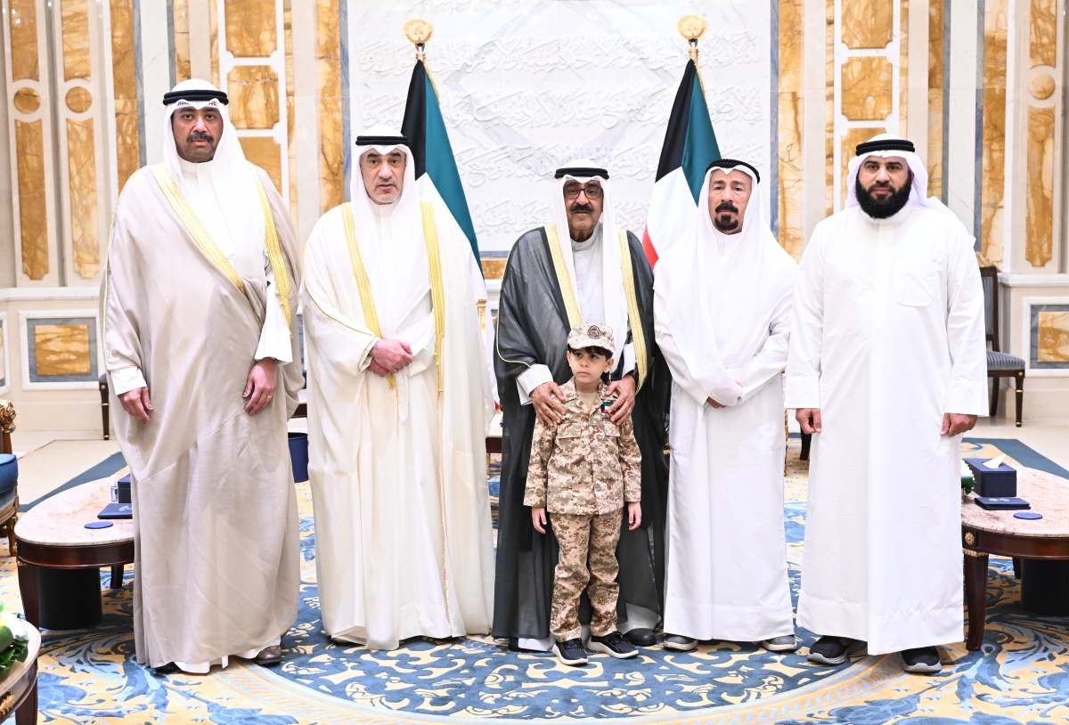 استقبل صاحب السمو أمير البلاد الشيخ مشعل الأحمد الجابر الصباح اليوم النائب الأول لرئيس مجلس الوزراء ووزير الداخلية الشيخ فهد يوسف سعود الصباح ووزير الدفاع الشيخ عبدالله علي عبدالله السالم الصباح وأسر شهداء الواجب المغفور لهم بإذن الله تعالى الرقيب وليد مجيد سليمان والرقيب عبدالعزيز عبدالمحسن داخل ناصر من منتسبي القوة البحرية بالجيش الكويتي والمقدم ركن عبدالله عماد الشراح والرائد فهد عبدالعزيز المجمد من منتسبي الإدارة العامة لأمن الحدود البرية بوزارة الداخلية والذين استشهدوا أثناء قيامهم بواجبهم الوطني في إطار المهام الوطنية المنوطة بهم في التصدي والردع للإعتداء الإيراني الآثم على دولة الكويت.