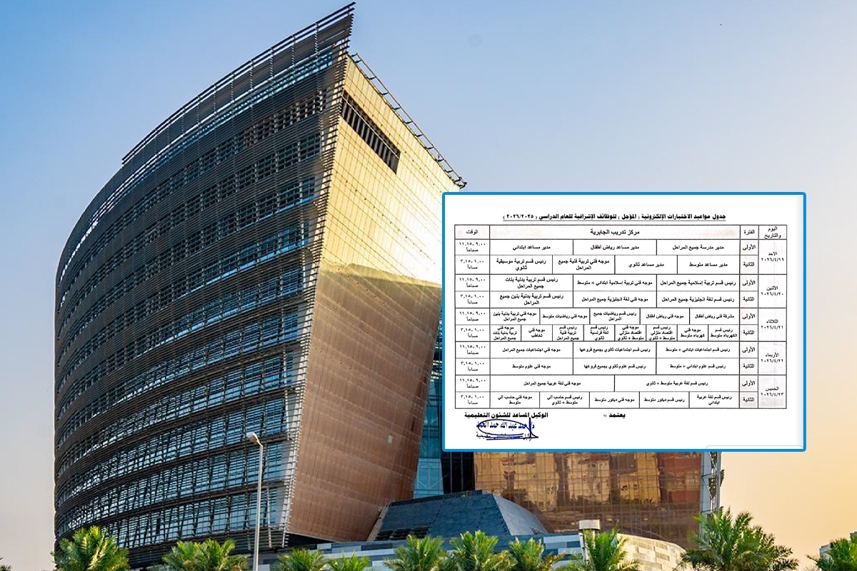 وبحسب الجدول المرفق للكتاب فإن فئة مدير مدرسة ومدير مساعد بجميع المراحل الدراسية سيكون اختبارهم يوم الأحد 19 الجاري، بمركز تدريب الجابرية، على فترتين، فيما سيكون يوم الاثنين 20 الجاري مخصصا لفئة رئيس قسم مادة دراسية وموجه فني.