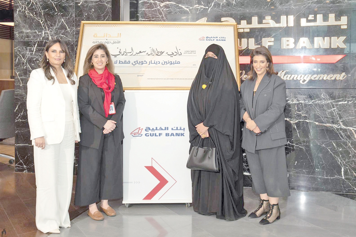 استقبل بنك الخليج المليونيرة نادية عطا الله سعد السليماني، الفائزة بأكبر جائزة نقدية في العالم بقيمة مليوني دينار، في السحب السنوي الكبير لحساب مليونير الدانة المؤجل عن عام 2025، والذي جرى مؤخراً في المقر الرئيسي للبنك، تحت إشراف مكاتب تدقيق عالمية، وتم بثه على الهواء مباشرة من خلال منصات التواصل الاجتماعي للبنك.