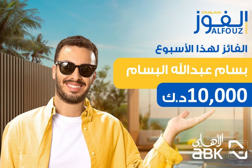 أعلن البنك الأهلي الكويتي فوز بسام عبدالله البسام في السحب الأسبوعي لحساب «الفوز» للجوائز، بجائزة نقدية قدرها 10000 دينار، والذي أقيم تحت إشراف وزارة التجارة والصناعة، وتم الإعلان عن اسم الفائز الاثنين الماضي.
