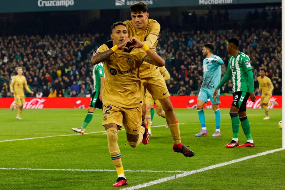 وسجل لاعبو برشلونة الأهداف الثلاثة، إذ تقدم النادي الكتالوني بهدفي البرازيلي رافينيا (65) والعائد من الإيقاف المهاجم البولندي روبرت ليفاندوفسكي (80)، ليعود ويقلص الفارق لمصلحة بيتيس بالنيران الصديقة من مدافعه الفرنسي جول كونديه (85).