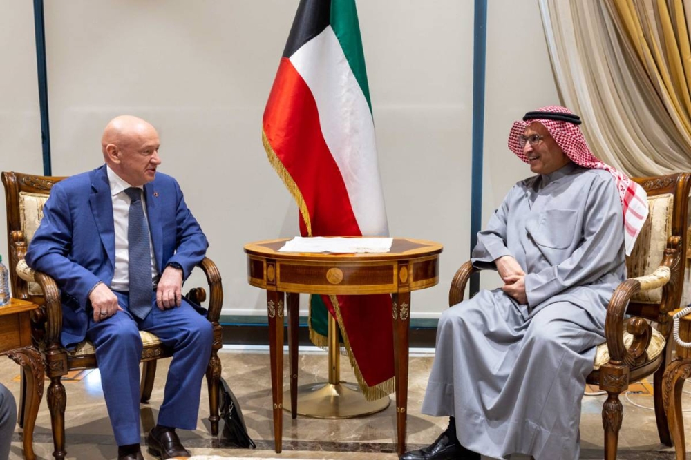 التقى نائب وزير الخارجية السفير منصور العتيبي، اليوم، مع رئيس وفد غرفة التجارة والصناعة في روسيا الاتحادية فلاديمير بلاتونوف بمناسبة زيارته الرسمية إلى دولة الكويت حيث جرى خلال اللقاء استعراض مسارات التعاون الثنائي بين البلدين الصديقين وسبل تطويرها لا سيما في المجالين التجاري والاقتصادي.