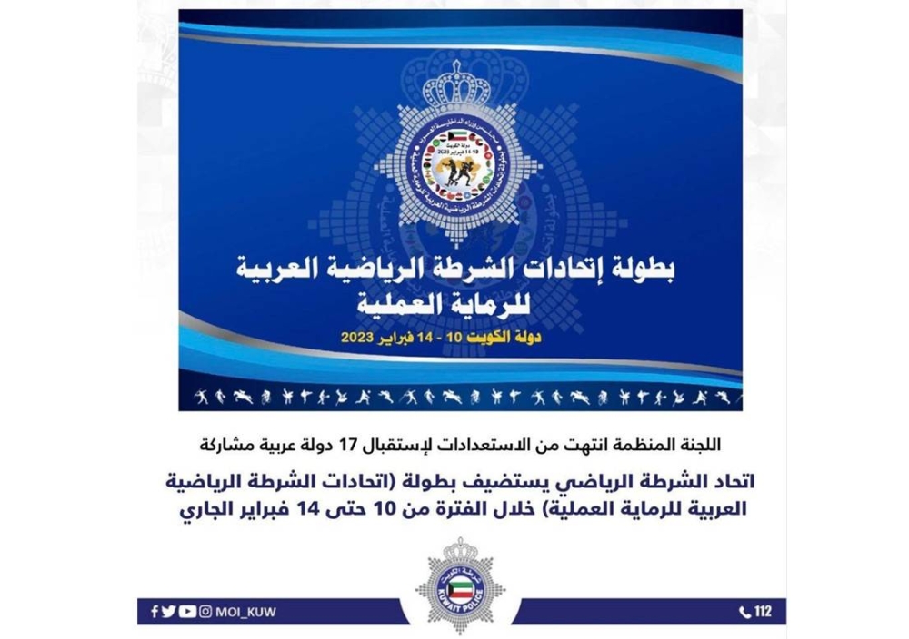 يعقد اتحاد الشرطة الرياضي في الحادية عشرة صباح اليوم الخميس مؤتمراً صحافياً، لتسليط الضوء على بطولة اتحادات الشرطة الرياضية العربية للرماية العملية، التي تستضيفها الكويت من 10 إلى 14 الجاري.
