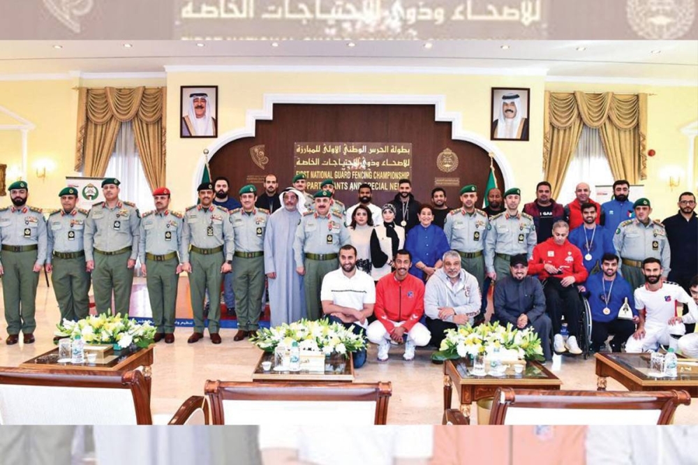 برعاية نائب رئيس الحرس الوطني الشيخ فيصل النواف، اختتم الحفل الختامي لبطولة الحرس الأولى للمبارزة للأصحاء وذوي الهمم بالتعاون مع نادي التحدي الرياضي، تزامناً مع الاحتفالات بالأعياد الوطنية، بحضور وكيل الحرس الفريق الركن مهندس هاشم الرفاعي، وعدد من قادة وضباط الحرس.