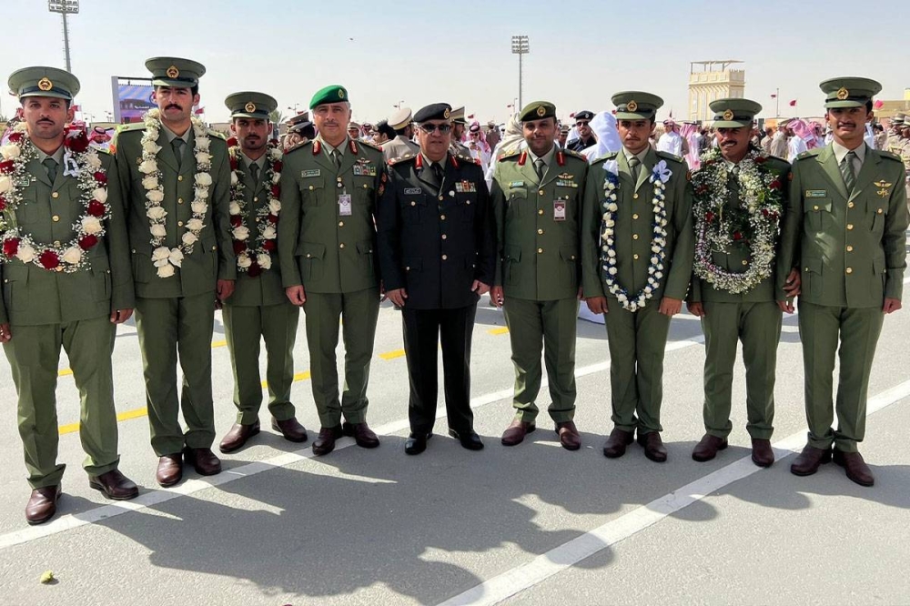 شهد قائد الحماية والتعزيز في الحرس الوطني اللواء الركن حمد أحمد حفل تخريج الدفعة الثامنة عشرة في كلية أحمد بن محمد العسكرية بدولة قطر الشقيقة، بينهم 13 ضابطاً من الحرس الوطني.