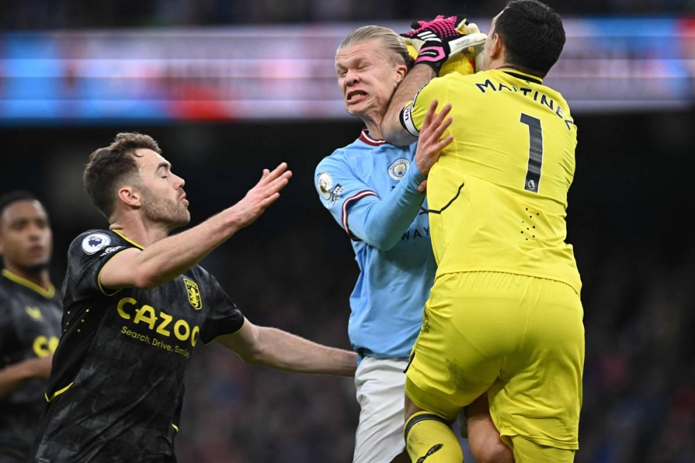 وظل النجم النرويجي يتألم عدة دقائق في الفخذ بعد تعرضه لالتحام مع حارس أستون فيلا، الأرجنتيني إميليانو مارتينيز، في شوط المباراة الأول.