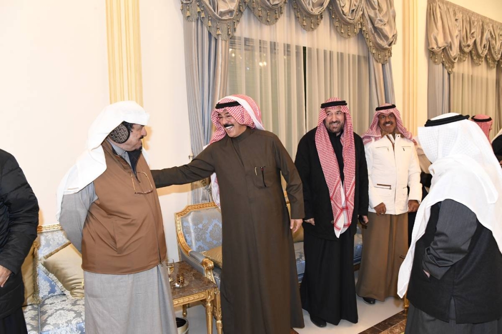 سموه وصباح الخالد ويبدو ناصر المحمد وعدد من أبناء الأسرة