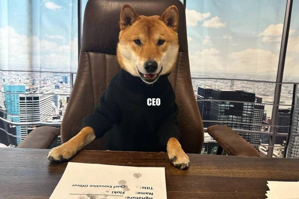 ويظهر في الصور كلب من سلالة شيبا إينو، وعلى طاولة أمامه أوراق عليها «ختم» على شكل طبعة مخلب، ولافتة مكتوب عليها اسم «فلوكي».