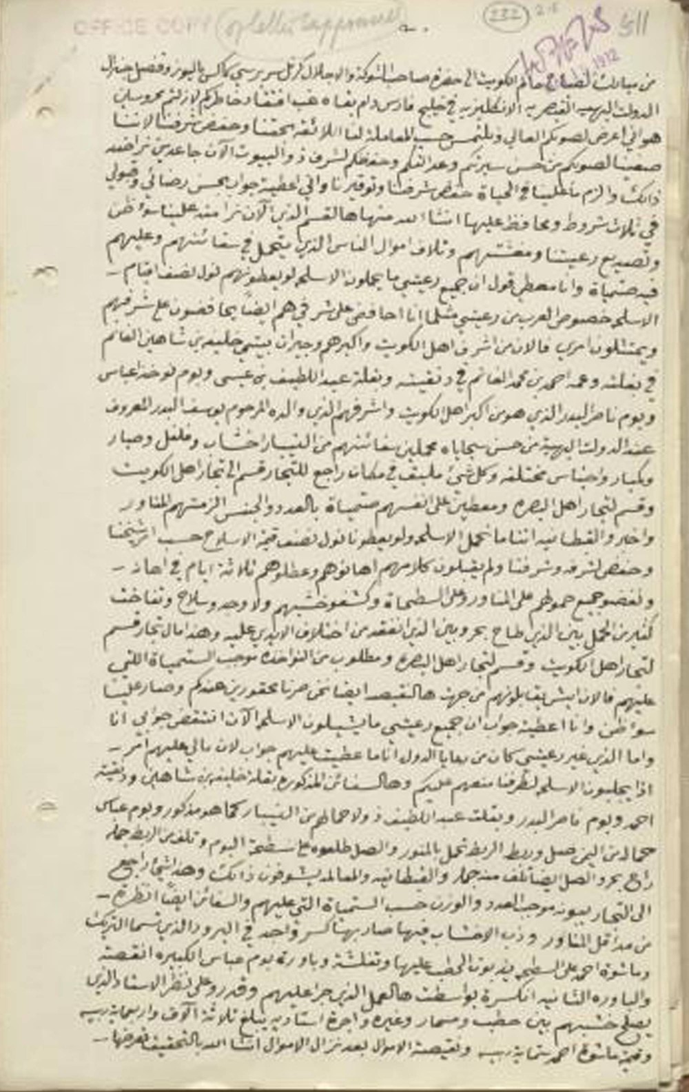 وثيقة لها تاريخ : الشيخ مبارك مخاطباً الإنكليز: أنا غير مسؤول عن رعايا الدول الأخرى