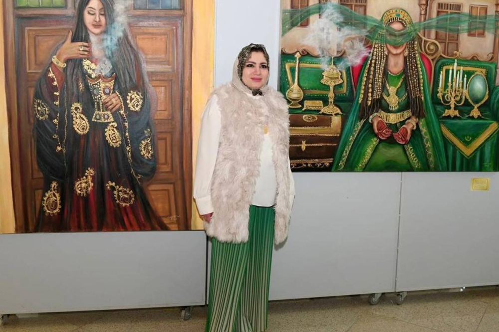 ولفتت العصفور إلى أنه ضمن لوحاتها لوحة لبيت القرين، الذي شهد ملحمة القرين، التي راح ضحيتها شهداء مجموعة المسيلة، وأيضاً تم توثيق بوابة قصر السيف العامر، والدمار الذي حل به عقب الغزو.
