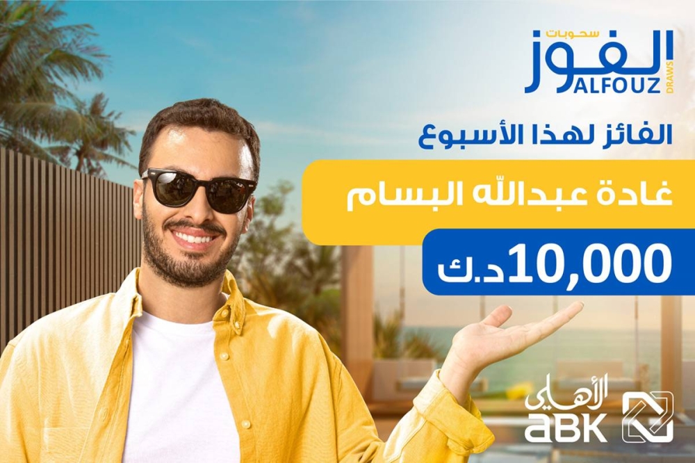 أعلن البنك الأهلي الكويتي فوز غادة عبدالله البسام في السحب الأسبوعي لحساب «الفوز» للجوائز، بجائزة نقدية قدرها 10000 دينار، والذي أقيم تحت إشراف وزارة التجارة والصناعة، وتم الإعلان عن اسم الفائزة الاثنين 20 فبراير 2023.