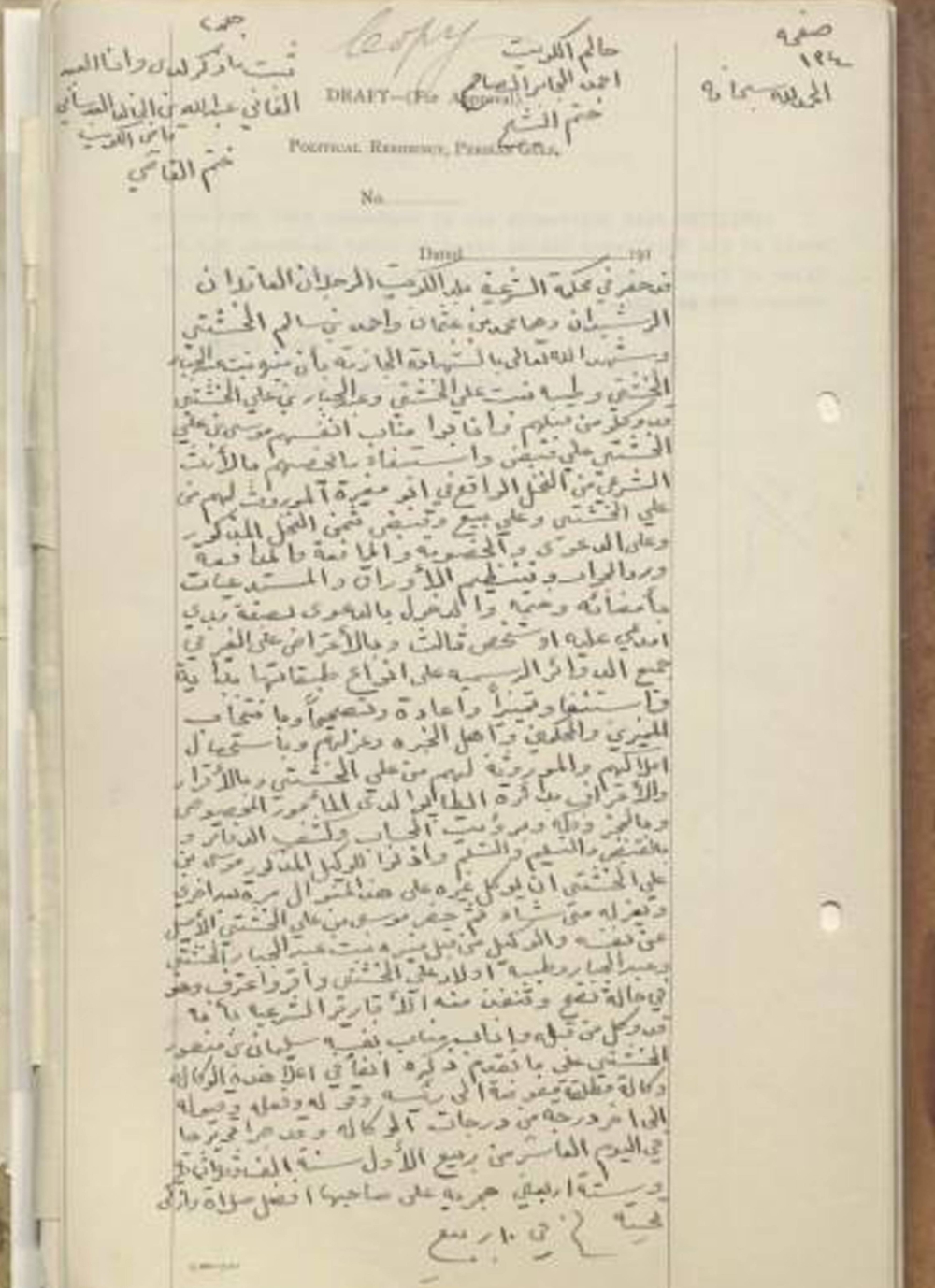 نبدأ من مقال اليوم نشر وثائق جديدة، وثقت في مرحلة العشرينيات والثلاثينيات من القرن الماضي، وتتعلق بعائلات كويتية. هذه الوثائق مصدرها الأرشيف البريطاني، أي أن أصولها محفوظة في المكتبة البريطانية بلندن، ويمكن للمهتم بها أن يطلع عليها من خلال الموقع الإلكتروني لمكتبة قطر الوطنية.