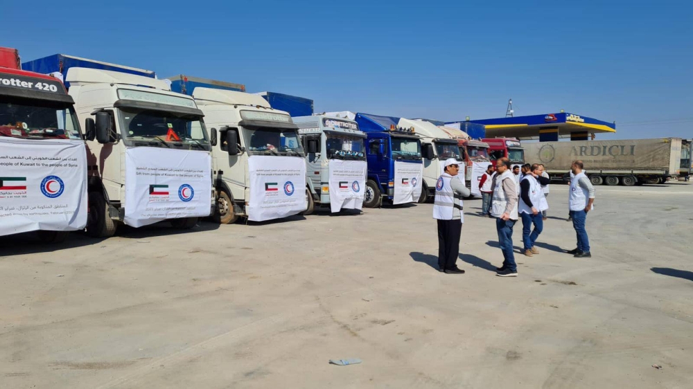 أعلنت جمعية الهلال الأحمر الكويتي دخول 9 شاحنات عن طريق معبر باب السلامة إلى سورية بالتعاون مع الهلال الأحمر القطري.