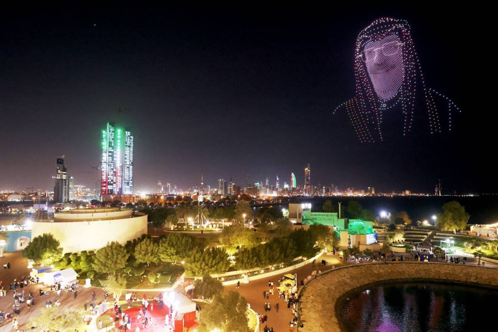 وحلّقت أسراب طائرات الدرون في سماء مدينة الكويت، وبالتحديد في منطقة الجزيرة الخضراء، لتتلألأ من خلاها بلوحات فنية ضوئية متحرّكة أبهرت الجماهير الغفيرة التي حضرت لمشاهدة العرض، وشملت اللوحات العديد من الرموز الوطنية الأصيلة مثل علم الكويت والشعار الرسمي لاحتفالات هذا العام «عزّ وفخر»، ولوحات من ماضي الكويت مثل الغوص للبحث عن اللؤلؤ وحياة البادية وغيرها.