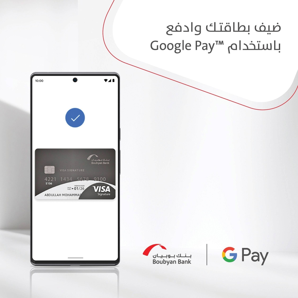 خدمة Google Pay سوف تتيح لعملاء «بوبيان» القيام بعمليات الدفع بكل سهولة، سواء من داخل التطبيق، أو عند الشراء على الإنترنت، دون الحاجة إلى حمل البطاقة أو إنشاء حسابات وإدخال معلومات بطاقات الائتمان في كل مرة.