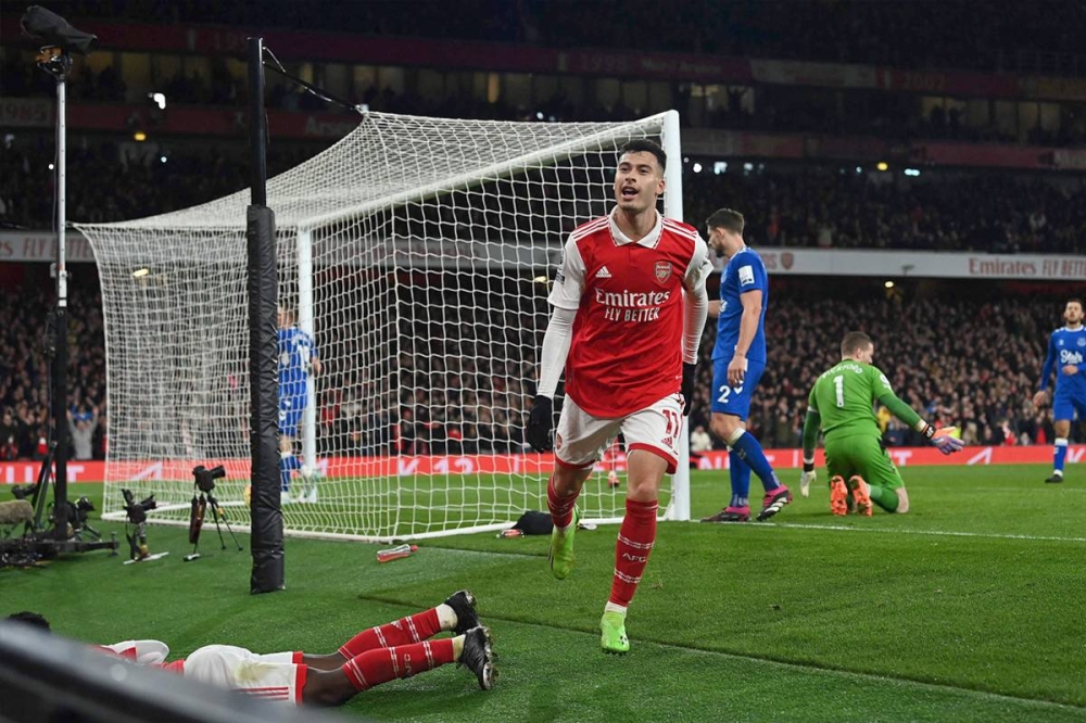 استفاد أرسنال من مباراته المؤجلة من المرحلة السابعة للدوري الإنكليزي في كرة القدم على أفضل وجه، وابتعد في الصدارة بفارق 5 نقاط عن مانشستر سيتي، حامل اللقب، بفوزه الكبير على ضيفه إيفرتون 4-صفر، الأربعاء.