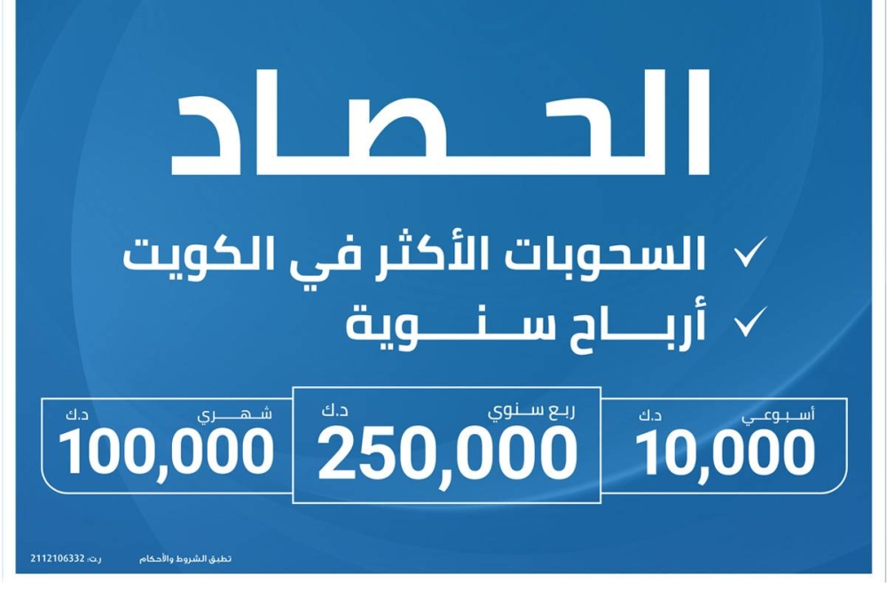 يقدم حساب الحصاد في باقته الجديدة مجموعة أوسع من المزايا، حيث يحظى الرابحون من عملاء «المتحد» بجائزة شهرية بقيمة 100.000 دينار، إضافة إلى 10 جوائز أسبوعية بقيمة 1000 دينار لكل جائزة.