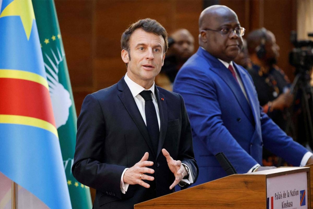 ماكرون يختتم جولة إفريقية بكينشاسا محاصراً بأعلام روسيا