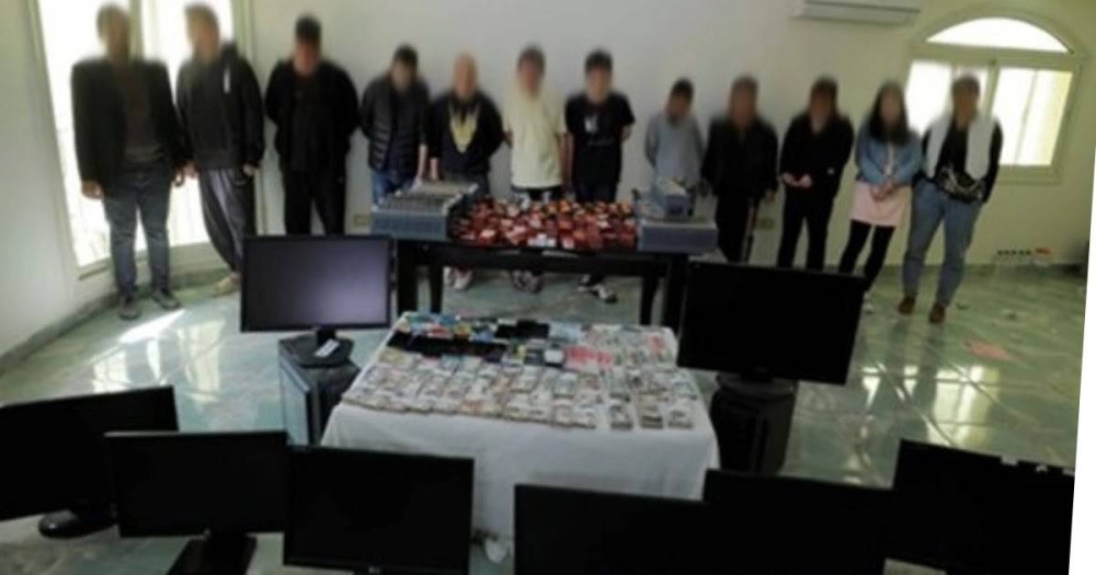 وقالت وزارة الداخلية في بيان السبت إنه تم توقيف المتهمين وبحوزتهم «95 هاتفاً محمولاً و3367 خطاً هاتفياً.. و41 بطاقة إئتمانية لبنوك بالخارج».