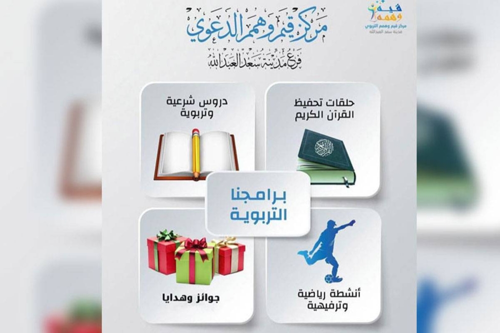 من جانب آخر، يقيم مركز قيم وهمم التربوي بمدينة سعد العبدالله برامج تربوية موجهة لأهل المنطقة، وخاصة فئة الناشئة والشباب، تشتمل على العديد من الأنشطة، كحلقات تحفيظ القرآن الكريم، والدروس الشرعية والتربوية، والأنشطة الرياضية والترفيهية، ويحصل المشاركون في هذه الأنشطة على جوائز وهدايا تشجيعية. وستكون جميع هذه الأنشطة بمسجد عمر بن الخطاب قطعة 5، ومسجد عمر بن أبي سلمة بقطعة 6.
