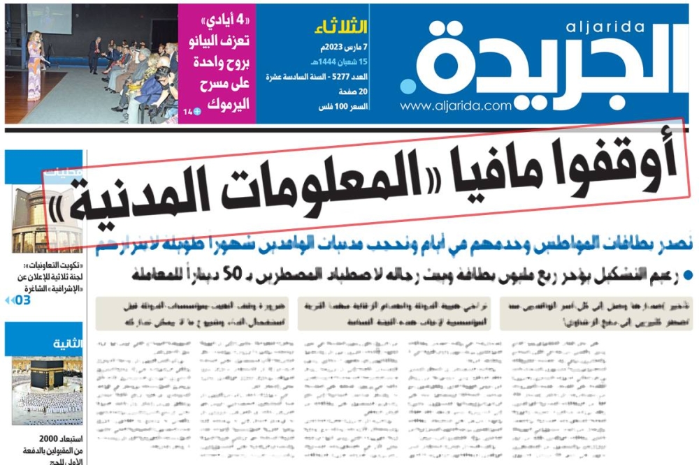 رداً على مانشيت «الجريدة» أمس، الذي نادت فيه بإيقاف «المافيا» التي تنخر في أساس الهيئة العامة للمعلومات المدنية، عبر تلقي بعض موظفيها رشاوى لتسريع إصدار البطاقات المدنية التي تجاوز تأخر بعضها 9 أشهر، أصدرت الهيئة توضيحاً أقرت فيه بوجود شبكة الرشاوى، نافية حدوث أي تزوير أو تلاعب في المعاملات.