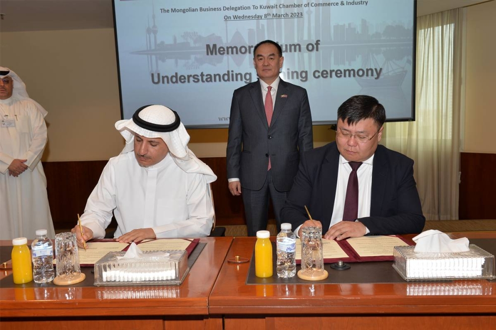 وفي نهاية اللقاء أعرب الجوعان عن شكره العميق للوفد المنغولي على الزيارة، وللحضور على مشاركتهم في مثل هذه الفعاليات الاقتصادية، حيث وقّع رئيسا الجانبين مذكرة تفاهم بين الغرفتين تهدف إلى تعزيز التعاون الثنائي ودعم الأنشطة الاقتصادية المشتركة.