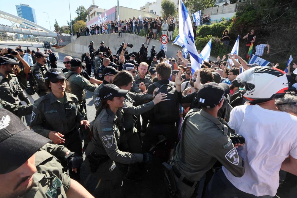 وقال وزير الأمن الوطني إيتمار بن غفير لدى وصوله إلى المطار لتنسيق إجراءات التعامل مع المظاهرات: «لم يقل أحد ألا تحتجوا. لكن ليس من المقبول أو الصائب أو المناسب تخريب حياة 70 ألفاً»، في إشارة إلى العالقين في الاختناقات المرورية إلى جانب من لهم رحلات جوية. وتضمنت الاحتجاجات الحاشدة التي خرجت بعدة مدن رئيسية وتخللتها صدامات بين قوات الأمن ومتظاهرين تعطيل ميناء حيفا البحري، فيما أفادت تقارير عبرية بفصل عقيد في سلاح الجو الإسرائيلي لقيادته تظاهرات الاحتجاج ضد حكومة نتنياهو» التي تخشى من مواجهة تمرد يؤثر على جاهزية سلاح الجو الذي تعتمد عليه الدولة العبرية بشكل أساسي.