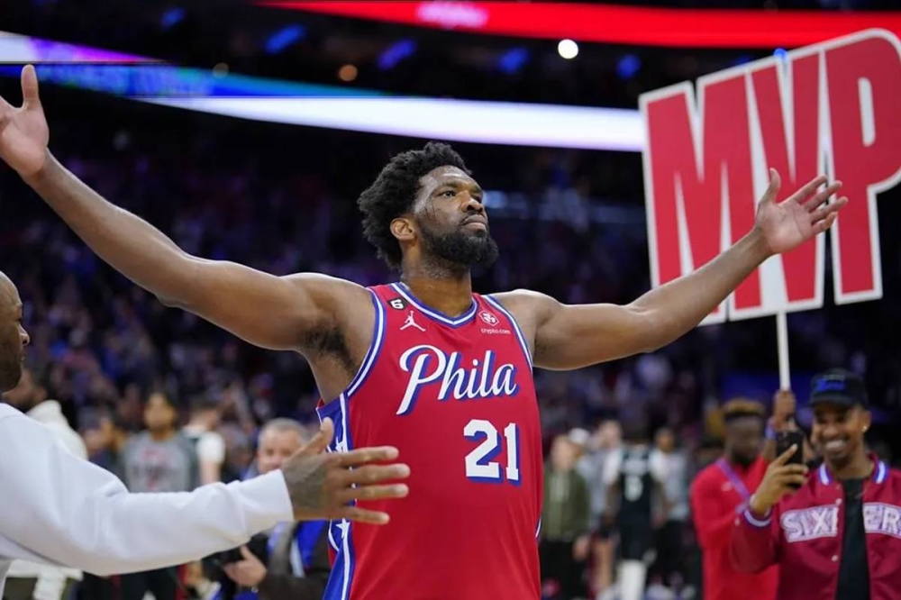 وألهب اللاعب الرقم 21 الجماهير، بحركة نادرة من عملاق بطول 2.13 مترين ويزن 127 كلغ، فقاد فيلادلفيا إلى فوزه الرابع توالياً في دوري «أن بي ايه»، على وقع هتاف الحاضرين في ملعب «ولس فارغو سنتر»: «أم أفي بي! أم في بي!» أي أفضل لاعب في الدوري.