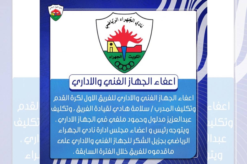 إقالة الجهازين الفني والإداري للجهراء
