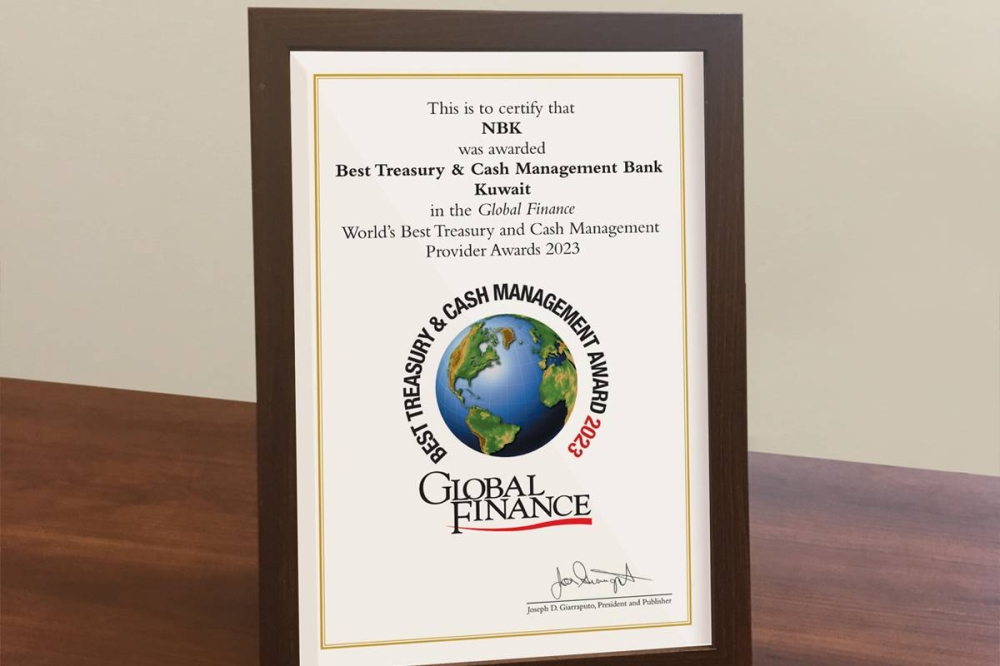 منحت مجلة غلوبل فاينانس العالمية بنك الكويت الوطني جائزة أفضل بنك على مستوى الكويت في مجال خدمات الخزينة وإدارة النقد لعام 2023، وذلك من خلال الاستبيان السنوي الذي شارك فيه مئات الخبراء والمحللين وكبار المستشارين والمديرين التنفيذيين لكبريات الشركات حول العالم.