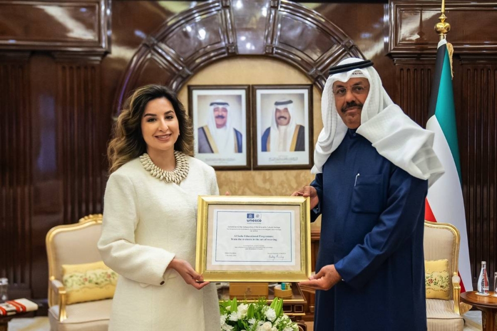استقبل رئيس مجلس الوزراء سمو الشيخ أحمد نواف الأحمد، في قصر بيان اليوم ، رئيسة مجلس إدارة جمعية السدو الكويتية الشيخة بيبي الدعيج، حيث قدمت لسموه شهادة منظمة الأمم المتحدة للتربية والعلم والثقافة (يونيسكو) عن ملف «أفضل ممارسات الصون»، والذي يعتبر أول ملف عربي لأفضل ممارسة لصون التراث، وذلك من خلال نقل المهارات المعرفية لنسيج السدو.