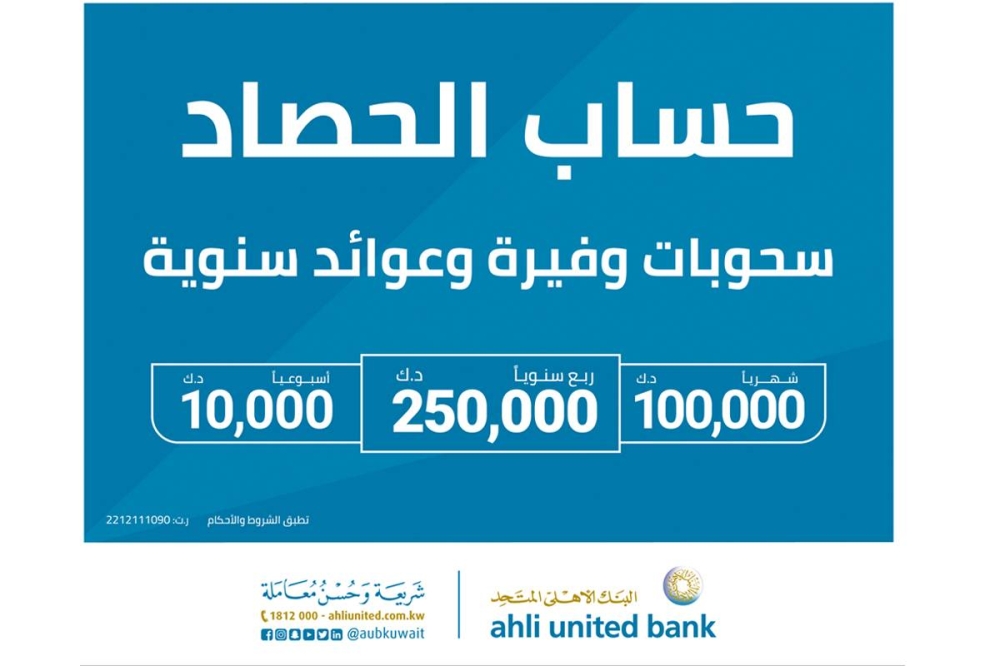 ويقدم حساب الحصاد الإسلامي في باقته الحالية مجموعة أوسع من المزايا، إذ يحظى الرابحون من عملاء «المتحد» بجائزة شهرية بقيمة 100.000 دينار، بالإضافة إلى 10 جوائز أسبوعية بقيمة 1.000 دينار لكل جائزة. وتبقى الجوائز ربع السنوية الكبري بقيمة 250.000 دينار نقدا للرابح هي أهم ما يطمح إليه العملاء، إذ تمثل لهم فرصة حقيقية لتحقيق حلم العمر.