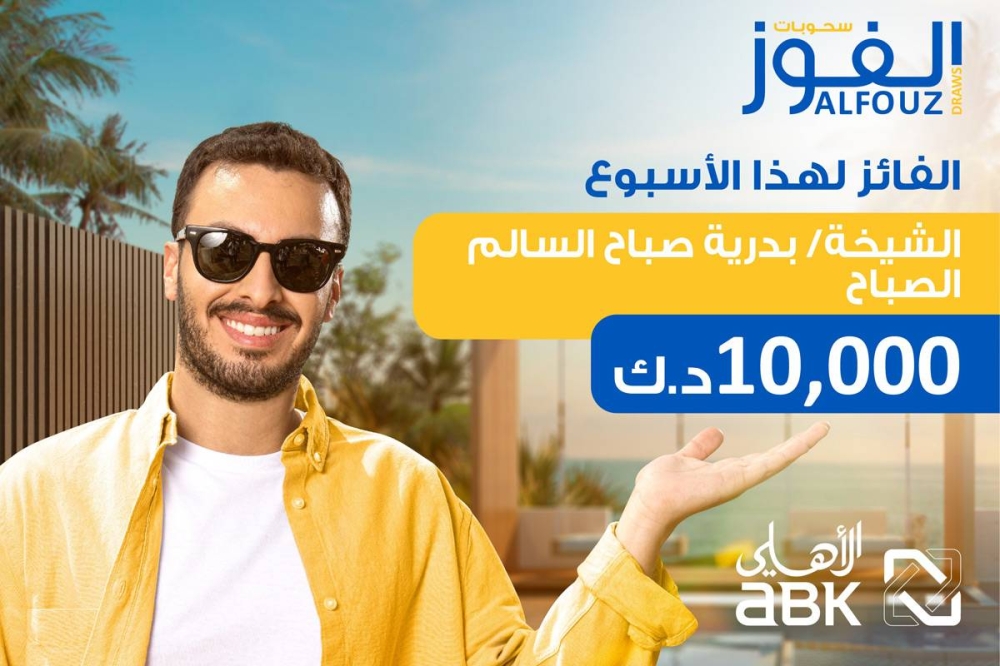 أعلن البنك الأهلي الكويتي فوز الشيخة/ بدرية صباح السالم الصباح في السحب الأسبوعي لحساب الفوز للجوائز، بجائزة نقدية قدرها 10000 دينار، والذي أقيم تحت إشراف وزارة التجارة والصناعة، وتم الإعلان عن اسم الفائزة الاثنين 20 مارس 2023.