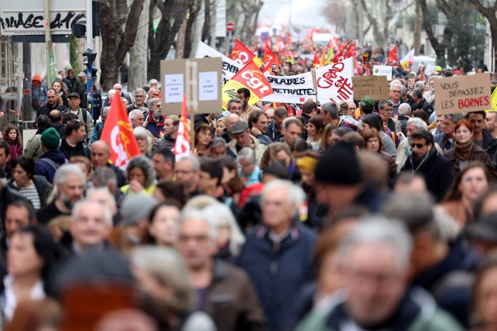 في إطار احتجاجات على مستوى فرنسا، أغلق اليوم عمال غاضبون من رفع سن التقاعد إلى 64 عاماً، الطريق إلى مطار شارل ديغول في باريس، ما أجبر بعض المسافرين إلى السير على الأقدام. وتعطلت خدمات القطارات، وأُغلقت مدارس، وتراكمت القمامة في الشوارع، وتعطل توليد الكهرباء، مع تصعيد النقابات الضغط على الحكومة لسحب القانون، الذي يتمسك به الرئيس إيمانويل ماكرون، وتعهد بإدخاله حيز التنفيذ بنهاية العام. وشوهدت أعمدة من الدخان تتصاعد من أكوام حطام محترقة أعاقت حركة المرور على طريق سريع بالقرب من تولوز، كما تسببت الإضرابات في إغلاق طرق بمدن أخرى لفترة وجيزة. وقبل تنظيم مسيرات احتجاجية في جميع الأنحاء، استهدفت احتجاجات أخرى مستودعات للنفط، وأغلقت محطة للغاز المسال في مدينة دنكيرك.