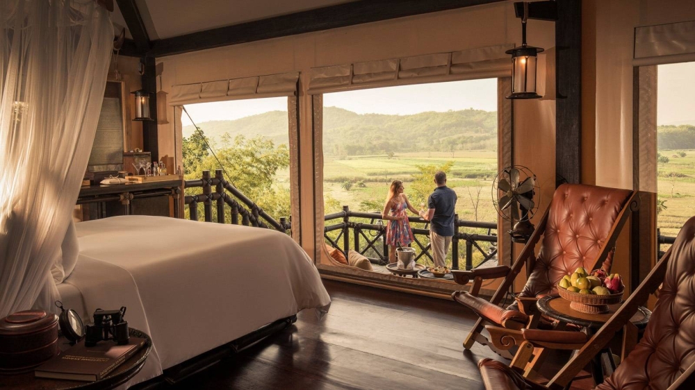 وللإقامة في خيام فاخرة في الغابة، يقدم فورسيزونز تينتد كامب جولدن تراينجل تايلاند تجربة مثالية للعائلات والأزواج في الجزء الشمالي الأكثر اكتظاظاً بغابات الخزيزان الخصبة، ويمكن تحويل «منزل المستكشفين» إلى مخبأ في الغابة الخاصة للعائلات التي تختار شغل كامل المرفق.